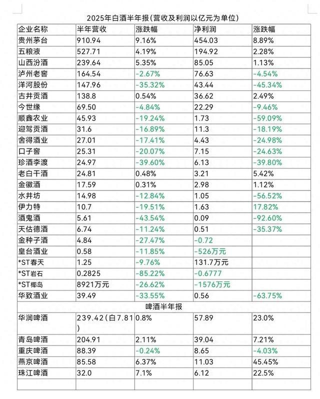 截至目前,所有白酒上市公司发布了半年报。半年报显示,在24家白酒上市公司中(含酒类流通企业华致酒行),仅有6家维持了营收利润正增长,*ST春天实现了扭亏(减亏),其余营收利润双双下滑,大多大幅下滑,4家白酒公司报亏。